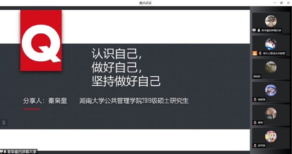 优秀研究生的2019级硕士研究生秦枭童以“认识自己,做好自己,坚持做好自己”为题进行了科研、升学经验分享。