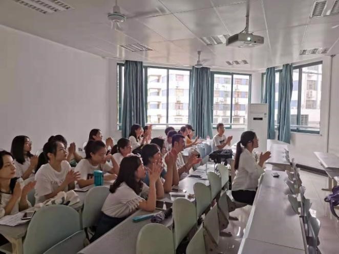 校歌》,同学们全神贯注地聆听并用心地去吟唱。最终,2019级研究生第一次见面交流活动在昂扬的歌声中结束了。
