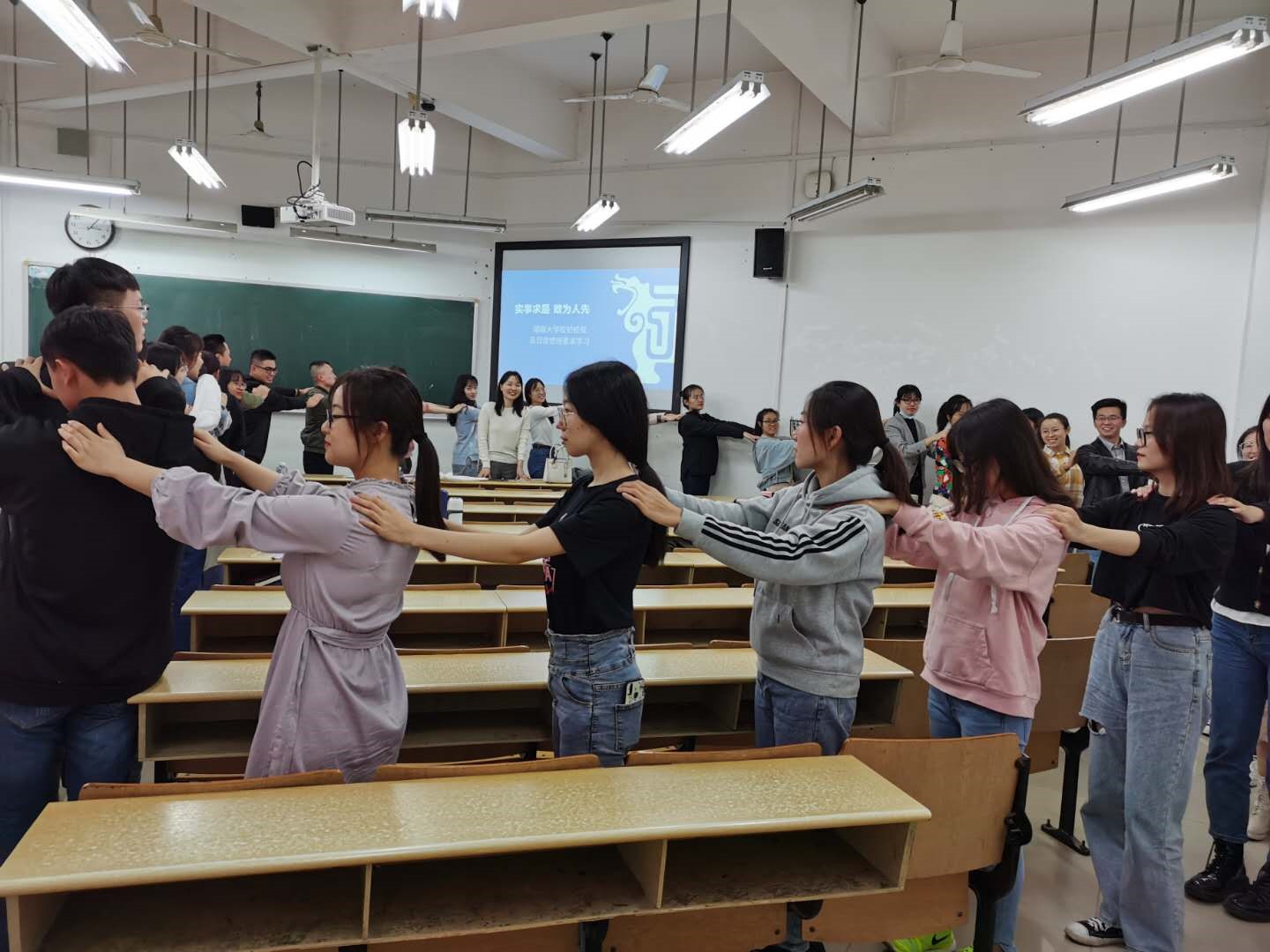 研究生辅导员杨锦滔老师主讲,2020级全体研究生参与。在团体辅导体验式教学课中,同学们认真参与,敞开心扉,积极完成各项任务,在交流中增强了集体凝聚力,也增进了彼此之间的了解,同时还对生涯规划有了一些认识。