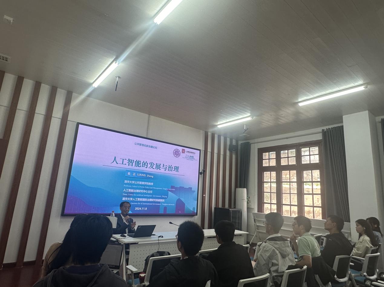 本次讲座内容共涵盖前沿人工智能的发展与应用、潜在风险、治理策略、治理国际比较四个方面。梁教授特别强调,未来要通过创新地运用“人工智能+”来赋能各个领域的发展。讲座现场,师生们参与兴趣浓厚,并与梁教授进行了深入交流,对人工智能有了更深刻和广泛的理解,收获良多。